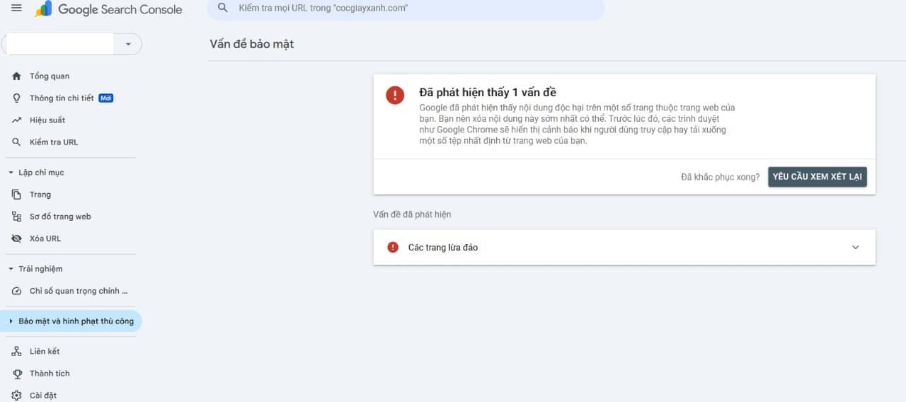 Sau khi làm sạch, vào Search Console → Sự cố bảo mật → Request Review.